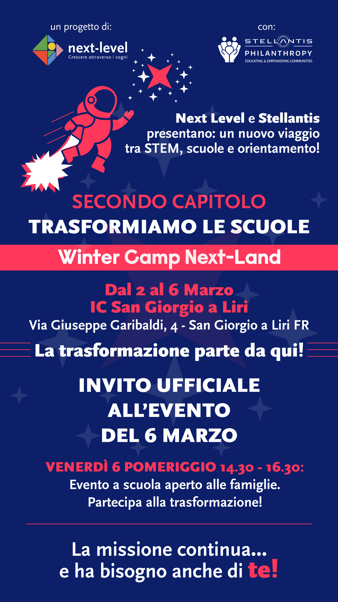 Next-Land è il progetto che trasforma le scuole, previene la dispersione scolastica e aiuta migliaia di ragazze e ragazzi a scoprire quanto le materie STEM possano cambiare il loro futuro. Next Level ETS e @StellantisITA , insieme ad una rete nazionale di partner, portano orientamento, scienze e sogni dove servono di più. Segui il nostro viaggio: il futuro si costruisce, insieme.